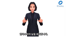 국내 업체인 이큐포올은 아바타를 통해 한글 문장을 수어 영상으로 번역하는 서비스를 발표.