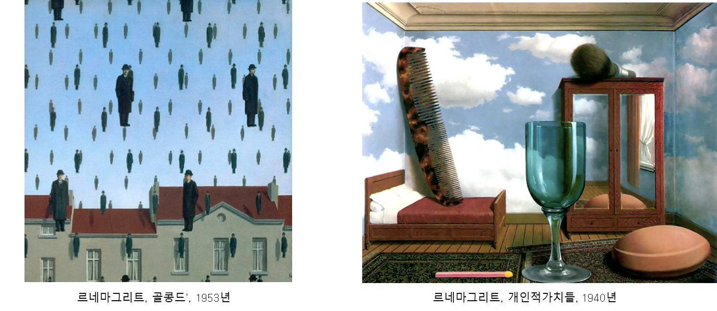 초현실주의는 이성의 지배를 받지 않는 환상의 세계를 중요시하며 비현실적이고 상상적인 공간을 나타냈다.